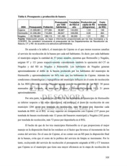 Tabla 6. Presupuesto y producción de basura Presupuesto Toneladas Producción per Costo por 1000 de RSU al cápita de RS tonelada 2004 Presupuesto Población habitantes año (kilogramos) de RSU Cajeme 21,509,981 377,584 56,967 144,000 1.04 149 Hermosillo 61,536,384 710,200 86,647 169,056 0.65 364 Nogales 22,795,891 188,113 121,182 90,000 1.31 253 Fuente: Elaboración propia, en base a información proporcionada por los tres municipios y la COESPO. Se consideró únicamente el presupuesto de los Departamentos de Recolección de Basura, CT y RS de acuerdo a la estructura administrativa. De acuerdo a la tabla 6, el municipio de Cajeme es el que menos recursos canaliza al servicio de recolección de la basura por cada mil habitantes. Es decir, por cada habitante el municipio asigna la cantidad de 57 pesos anuales, mientras que Hermosillo y Nogales, asignan 87 y 121 pesos respectivamente considerando también la operación del CT en Nogales y del RS en Nogales y Hermosillo. Los habitantes de Nogales generan aproximadamente el doble de la basura producida por los habitantes del municipio de Hermosillo y aproximadamente un 30% más que los habitantes de Cajeme. Además las condiciones climatológicas y topográficas del municipio influyen en el costo de recolección de los RSU. En este sentido, Nogales asigna para la recolección de los RSU 30 pesos mensuales por vivienda, en tanto que Cajeme y Hermosillo asignan 18 y 21 pesos aproximadamente. Por otra parte, la generación de RSU de los habitantes del municipio de Hermosillo es inferior respecto a los otros municipios; sin embargo, el costo de recolección de este municipio (266 pesos por tonelada de recolección, más 98 pesos por depositar cada tonelada de RSU en el RS) es muy superior en comparación con Cajeme (137 pesos por tonelada de basura recolectada más 12 pesos del basurero municipal) y Nogales (182 pesos por tonelada de recolección, más 72 pesos por depositarla en el RS). El hecho de que de los tres municipios Hermosillo es el que proporciona el mejor manejo en la disposición final de los residuos es el factor que favorece el incremento de los costos del servicio. En el caso de Cajeme, al no contar con un RS para la disposición final de la basura, evita que el costo de la política del servicio de limpia se incremente. Por lo tanto, excluyendo del servicio de recolección el presupuesto asignado al RS y CT tenemos que Cajeme es el municipio que tiene una mayor eficiencia en la etapa de recolección de 105
