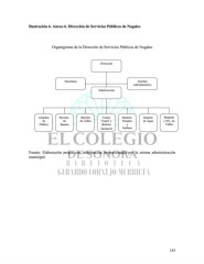 Ilustración 6. Anexo 6. Dirección de Servicios Públicos de Nogales Organigrama de la Dirección de Servicios Públicos de Nogales Dirección Secretaria Auxiliar Administrativo Subdirección Alumbra Recolec. Barrido Centro Panteón. Reparto Raspado do de de Calles Transf. y Parques de Agua y Niv. de Público Basura Relleno y Calles Sanitario Jardines Fuente: Elaboración propia con información proporcionada por la misma administración municipal. 143