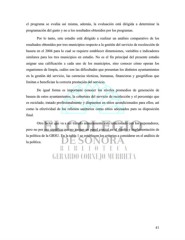 el programa se evalúa así misma, además, la evaluación está dirigida a determinar la programación del gasto y no a los resultados obtenidos por los programas. Por lo tanto, este estudio está dirigido a realizar un análisis comparativo de los resultados obtenidos por tres municipios respecto a la gestión del servicio de recolección de basura en el 2004 para lo cual se requiere establecer dimensiones, variables e indicadores similares para los tres municipios en estudio. No es el fin principal del presente estudio asignar una calificación a cada uno de los municipios, sino conocer cómo operan los organismos de limpia, cuáles son las dificultades que presentan los distintos ayuntamientos en la gestión del servicio, las carencias técnicas, humanas, financieras y geográficas que limitan o benefician la correcta prestación del servicio. De igual forma es importante conocer los niveles promedios de generación de basura de estos ayuntamientos, la cobertura del servicio de recolección y el porcentaje que es reciclado, tratado profesionalmente y dispuestos en sitios acondicionados para ellos; así como la efectividad de los rellenos sanitarios como sitios adecuados para su disposición final. Otro factor que va a ser tratado someramente está relacionado con los pepenadores, pero no por eso significa que no juegan un papel crucial en el diseño e implementación de la política de la GRSU. En la tabla 1 se establecen los criterios a considerar en el análisis de la política. 41