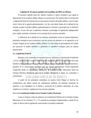 Capítulo II. El marco jurídico de la política de RSU en México El presente capítulo tiene por objetivo analizar el marco normativo que regula la disposición de los residuos sólidos urbanos en nuestro país. Por muchos años la recolección y disposición final de la basura fue un tema ajeno al interés del poder público y por lo tanto, estuvo fuera de la agenda gubernamental y no fue, sino hasta finales de la década de los setentas cuando la política pública gubernamental se comenzó a preocupar por el deterioro ecológico. Es por ello que el gobierno comenzó a promulgar la legislación indispensable para vigilar, controlar y fomentar el uso racional de los recursos naturales. A diferencia de la década de los sesentas, actualmente existe en nuestra legislación principios normativos que involucran a los tres niveles de gobierno en la regulación en el manejo integral de los residuos sólidos urbanos, lo cual refleja la preocupación del estado por preservar el medio ambiente y garantizar el equilibrio ecológico para las futuras generaciones. 2.1. Legislación Federal Respecto a los contenidos en nuestras leyes en referencia a la protección al ambiente y al uso racional de los recursos naturales en la legislación federal se encuentran leyes que facultan a los distintos niveles de gobierno (federal, estatal y municipal) como promotores y garantes de la conservación ecológica para las futuras generaciones. Dicha legislación comprende desde la Constitución Política de los Estados Unidos Mexicanos hasta las Normas Oficiales Mexicanas que son de carácter obligatorio el acatar sus contenidos y resoluciones. A partir de los principios contenidos en nuestra Carta Magna se derivan los compromisos que deben asumir las instituciones públicas, las distintas instancias de gobierno y los ciudadanos en el diseño y ejecución de la política ambiental, así como también en el control y vigilancia de los recursos naturales. 2.1.1. La Constitución Política de los Estados Unidos Mexicanos Como el máximo orden de gobierno, la Constitución Política de los Estados Unidos Mexicanos en los Artículos 27 y 115 contiene los principios fundamentales a partir de los cuales se deriva toda la legislación concerniente a la política ambiental. 46