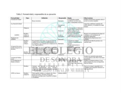 Establece lineamientos generales sobre el Apoyar las condiciones sanitarias del medio ambiente y el cuidado de la salud ciudadanos en la formulación de Reglamenta las disposiciones de la El derecho de todas las personas a un Faculta a los municipios para prestar servicios públicos entre ellos el de basura Establece la distancia mínima a la que deben instalarse los sitios de disposición Esta ley les otorga la capacidad de los ciudadanos par Observaciones uso de los recursos naturales humana programas ambientales LGEEPA ambiente sano. domiciliaria final de la basura materia ambiental Los municipios pueden coordinarse con otros mun., edos. o concesionar el servicio Le corresponde a la federación hacerse cargo el manejo de los residuos peligrosos y la preservación del ambiente Prevenir y controlar la contaminación del suelo y del medio ambiente en general. Controlar los residuos Verificar el cumplimiento de las leyes Otorgar autorizaciones o concesiones Vigilar las disposiciones jurídicas en el manejo de los resi Responsable Reglas Requiere de la participación de grupos de Gobierno local Gobierno local basura Gobierno federal Municipios Secretaría de Salud Federación Locales y municipales Federación Municipios Federación Tabla 2. Normatividad y responsables de su ejecución Definición Son generados en las casas, los que provienen de cualquier otra act. dentro de establecimientos o en la vía pública y los resultantes de la limpieza de las Son aquellos que poseen caract. de explosividad, toxicidad, inflamabilidad, o que contengan agentes infecciosos, así como envases, recipientes, embalajes y suelos que hayan sido contaminados cuando se transfieran a otro sitio, de conformidad con lo que se establece e Basura doméstica vías y lugares públicos. mat. Cualquier usarlo nuevamente. o el ambiente Tipos Peligrosos Residuos sólidos no peligrosos Residuos Sólidos Urbanos Residuos Peligrosos Residuos Residuos peligrosos Normatividad Constitución Federal Ley General de Salud LGEEPA Reglamento de LGEEPA LG para la Previsión y Gestión Integral de los Residuos Constitución Política Ley de Salud para el Estado de Sonora LEEPA de Sonora Local