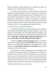Centro de Transferencia y Relleno Sanitario laboran 22 empleados de los cuales 3 son administrativos y los 19 restantes realizan labores operativas. De acuerdo al presupuesto global del municipio de Nogales a cada uno de sus habitantes le corresponde la cantidad de 1,357 pesos. La Dirección de Servicios Públicos de Nogales tuvo asignado en el 2004 un presupuesto anual de 56,396,840 pesos (B.O. No. 13). Para la operación de los departamentos de limpia y recolección de basura y el Centro de Transferencia y Relleno Sanitario se destinó de este presupuesto la cantidad de 44 22,795,891 pesos de los cuales el 72% se asignó a las actividades de recolección y el 28% al Centro de Transferencia y Relleno Sanitario. De esta manera, tenemos que el municipio de Nogales invirtió el 8.9 % de su presupuesto global en la gestión de los RSU. 3.3.5. Operación del servicio de recolección de basura El Departamento de Recolección de Basura de Nogales recolecta mensualmente 7,500 toneladas de RSU (Primer Informe de Gobierno, 2003-2006). A partir de esta información se puede determinar que cada ciudadano produce aproximadamente 1.330 kilogramos de basura diariamente lo que anualmente constituye, considerando a todos los habitantes del municipio, la cantidad de 90,000 toneladas anuales que tienen como destino final un relleno sanitario que se encuentra ubicado al suroeste de la ciudad. Para prestar con eficiencia el servicio de recolección de basura en el municipio se diseñó un plan de trabajo en el que se tienen contemplado la delimitación de rutas de recolección, con las rutas diarias, generalmente son las principales calles y avenidas principales de la ciudad. Además se diseñaron dos rutas más, poniente y oriente, enfocadas a atender esos sectores tres días a la semana. De esta manera, con el personal y el equipo disponible se tienen diseñadas 25 rutas y se cuentan con 30 camiones de los cuales 12 son compactadores y los restantes son de caja abierta. De estos 30 camiones el 50% opera normalmente, por lo que en ocasiones se tiene que recurrir a la renta de vehículos para recolectar la basura cuando alguno de los camiones recolectores presenta fallas mecánicas. El número de personas que se ocupan por camión varía de acuerdo al tipo de este, es decir, en los camiones compactadores viajan tres empleados, un chofer y dos auxiliares, mientras que, en los de caja abierta, se requiere de la 44 Presupuesto proporcionado por la Dirección de Servicios Públicos 94