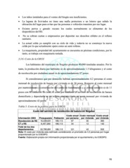 Los tubos instalados para el venteo del biogás son insuficientes. La laguna de lixiviados no tiene una malla protectora o un letrero que señale la ubicación del lugar para evitar que las personas o vehículos transiten por ese lugar. Existen perros y ganado vacuno los cuales normalmente se alimentan de los desperdicios del RS. No se cobran cuotas a empresarios por depositar sus desechos sólidos en el relleno sanitario. La actual celda ya cumplió con su ciclo de vida y todavía no se construye la nueva celda por lo que actualmente opera como un semi relleno. La maquinaria, propiedad del ayuntamiento se encuentra en pésimas condiciones, por lo tanto, se trabaja con maquinaria rentada. 3.3.6. Costo de la GRSU Los habitantes del municipio de Nogales producen 90,000 toneladas anuales. Por lo tanto, la producción diaria por habitante es de aproximadamente 1.3 kilogramos y el costo de recolección por ciudadano anual es de aproximadamente 87 pesos. Si consideramos que por domicilio habitan aproximadamente 4.2 personas el costo mensual de recolección de basura por vivienda es de 30 pesos. Respecto al costo mensual por mantenimiento y conservación del centro de transferencia y el relleno sanitario es de 11 pesos con 80 centavos. En total, el costo por mantener el servicio de recolección de basura domiciliaria y depositarla en un relleno sanitario tiene un costo mensual por vivienda de aproximadamente 42 pesos. Tabla 5. Costo de la política para la GIRSU Costo del servicio de recolección de basura en Nogales Costo anual Costo mensual Costo anual Información 2004 Presupuesto Población por persona por vivienda por vivienda Recolección de RS 16,338,631 188,113 87 30 360 CT y RS 6,457,260 188,113 34 12 142 Total de los dos departamentos 22,795,891 188,113 121 42 502 Nota: El costo por vivienda esta estimado considerando un promedio de 4.2 personas por hogar proporcionado por la COESPO. Fuente: Elaboración propia con información proporcionada por el ayuntamiento y la COESPO. 98