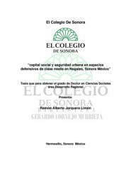 El Colegio De Sonora “capital social y seguridad urbana en espacios defensivos de clase media en Nogales, Sonora México” Tesis que para obtener el grado de Doctor en Ciencias Sociales área Desarrollo Regional Presenta: Ramón Alberto Jorquera Limón Hermosillo, Sonora México