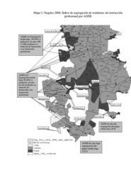 Mapa 5. Nogales 2000, Índice de segregación de residentes sin instrucción profesional por AGEB AGEB con Segregación media baja (30-40%) y población de entre 500 y 1000 residentes en situación de instrucción o no instrucción profesional AGEB con Segregación media baja (30-40%) y población de más de mil residentes en situación de instrucción o no instrucción profesional AGEB de más alta segregación del grupo media baja (39.8) AGEB de más baja segregación del grupo media baja (32.5)