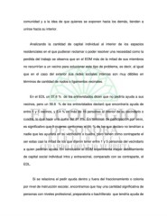 comunidad y a la idea de que quienes se exponen hacia los demás, tienden a unirse hacia su interior. Analizando la cantidad de capital individual al interior de los espacios residenciales en el que pudieran reclamar o poder resolver una necesidad como la perdida del trabajo se observa que en el EDM más de la mitad de sus miembros no recurrirían a un vecino para solucionar este tipo de problema, es decir, al igual que en el caso del exterior sus redes sociales internas son muy débiles en términos de cantidad de nudos o ligamentos vecinales. En el EDL un 37.8 % de los entrevistados dicen que no pediría ayuda a sus vecinos, pero un 56.8 % de los entrevistados declaró que encontraría ayuda de entre 1 y 5 vecinos, y 5.4 % en más de 16 personas al interior de su vecindario o cuadra, lo que hace una suma del 61.8%. En términos de participación por sexo, es significativo que 9 mujeres conforman el 64. % de los que declaro no tendrían a nadie que les ayudara en su vecindario o cuadra, pero tienen como contraparte el ser estas casi la mitad de los que dijeron tener entre 1 y 5 personas del vecindario a quien pedirían ayuda. En conclusión el EDM experimenta mayor debilitamiento de capital social individual intra y extravecinal, comparado con se contraparte, el EDL. Si se relaciona el pedir ayuda dentro y fuera del fraccionamiento o colonia por nivel de instrucción escolar, encontramos que hay una cantidad significativa de personas con niveles profesional, preparatoria o bachillerato que tendría ayuda de