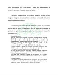 hacen espacio social, para el caso, frontera y ciudad. Bajo esta perspectiva se concibe la frontera, en el relato de quienes la habitan. La frontera que los mismos consumidores, reprueban, conciben caótica, insegura y en algunos de los casos fea, se naturaliza en la interacción diaria, como todas las interacciones rutinarias. Se expresan gustos como sentido de pertenencia; ventajas por la economía del “otro lado”; se declara frontera insegura pero con nogalenses tranquilos y “no pleitistas”; se apela a una seguridad pero con desventajas como frontera de “los que vienen y van”. “¿Le gusta la frontera? A mi me gusta Nogales siempre he vivido aquí.” (residente de V.B., mujer de C.S. medio) “Aunque este feo…yo sí estoy orgulloso de ser de Nogales. Aunque la seguridad en todo Nogales está muy jodida... es la verdad.”(Residente de R.A., hombre de C.S. medio) “¿Qué le mostrarías a alguien que no conoce la ciudad?, ¿qué lugares de la ciudad? -Ay….pues…. Ninguno, entre menos la conozcan mejor [...] -Sí puedo, me puedo ir al “otro lado” pero…Es que ya tomé agua de Nogales, yo nací aquí pues… ¿Tú cómo defines a los nogalenses? Pero como gente….tranquila. Tranquila….no nos metemos con…no somos pleitistas, no provocamos broncas.” (Residente de V.B., mujer de C.S. medio) “¿Nogales es seguro? - muy seguro, no, como es frontera tiene sus desventajas, van y vienen de aquí para allá y los que vienen de allá vienen maleados [Estados Unidos] como aquí se gana más poquito.”(Residente de R.A., hombre de C.S. bajo)
