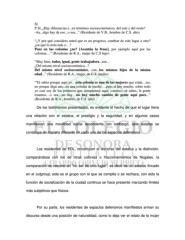 Sí. P Sí, ¿Hay diferencias e...en términos socioeconómicos, del este y del oeste? -Aa...algo hay de eso...o sea...” (Residente de V.B., hombre de C.S. alto) “¿Y por qué considera usted que es un progreso, cambiar de este lugar a otro? ¿en qué lo nota más o…? Pues en las colonias ¿no? [Acentúa la frase], por ejemplo aquí por las colonias…” (Residente de R.A., mujer de C.S bajo) “Muy bien, todos, igual, gente trabajadora...eee... ¿Del mismo nivel socioeconómico...? Del mismo nivel socioeconómico, con...los mismos hijos de la misma edad...” (Residente de R.A., mujer, de C.S. medio) “Tú sabes porque aquí yo…esta colonia es una de las mejores que están…no, no porque diga uno...es una colonia de medio….pero sí hay mucho, sobre todo yo casi soy de los primeros que compramos aquí, conozco, tú sabes, la gente estamos…o sea…no hay…no hay mucho cambio de gente aquí pues...” (Residente de R.A., hombre, de C.S. alto) De los testimonios presentados, es evidente el hecho de que el lugar tiene una relación con el estatus, el prestigio y la seguridad, y en algunos casos manifiestan una movilidad social ascendente, sin embargo, este estatus se construye de manera diferente en cada uno de los espacios defensivos. Los residentes de EDL, construyen el discurso del estatus y la distinción, comparándose con los de otras colonias o fraccionamientos de Nogales, la comparación se resume en “no ser de otro lugar”, es decir es un estatus fincado en el outgroup, este es el grupo con el que se compite o se rechaza, con esto la función de socialización de la ciudad continua se hace presente marcando limites más subjetivos que físicos. Por su parte, los residentes de espacios defensivos manifiestos arman su discurso desde una posición de naturalidad, como lo deja ver el relato de la mujer