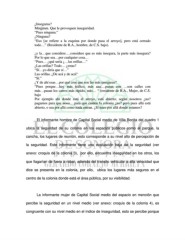 ¿Inseguras? Mmjjmm. Que le provoquen inseguridad. “Pues ninguna.” ¿Ninguna? “Eso [se refiere a la esquina por donde pasa el arroyo], pero está cerrado todo…” (Residente de R.A., hombre, de C.S. bajo). ¿y la…que considere….considere que es más insegura, la parte más insegura? Por lo que sea…por cualquier cosa… “Pues… ¿qué sería ¿…las orillas…” ¿Las orillas? Todo… ¿estas? “Sí…yo diría que sí…” Las orillas. ¿De acá y de acá? “Sí.” ¿Y de ahí esas…por qué cree que son las más inseguras? “Pues porque…hay más tráfico, más aaa….pasan con …son calles con más…pasan los carros más rápido, más… “ (residente de R.A., Mujer, de C.S. bajo Por ejemplo ahí donde está el arroyo, está abierto; según nosotros ¿no? pagamos para que nooo….para que cuiden la colonia ¿no? pero pues allá está abierto, o sea por allá como nada entran. ¿Sí miro por allá donde estamos? El informante hombre de Capital Social medio de Villa Bonita del cuadro 1 ubica la seguridad de su colonia en los espacios públicos como el parque, la cancha, los lugares de reunión, esto corresponde a su nivel alto de percepción de la seguridad. Este informante tiene una evaluación baja de la seguridad (ver anexo: croquis de la colonia 3), por ello, encuentra inseguridad en los otros, los que llagarían de fuera a robar, además del transito vehicular a alta velocidad que dice se presenta en la colonia, por ello, ubica los lugares más seguros en el centro de la colonia donde está el área pública, por su visibilidad. La informante mujer de Capital Social medio del espacio en mención que percibe la seguridad en un nivel medio (ver anexo: croquis de la colonia 4), es congruente con su nivel medio en el índice de inseguridad, esto se percibe porque