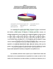 Gráfico: 2 Evaluación de zonas y sitios de la ciudad de Nogales Sonora, proporcionada por un residente de Espacio Defensivo Latente, de sexo femenino, de Capital Social bajo y originario de la ciudad 1 0 2 3 1 2 4 Z que le gusta A1= 1, A5= 1, B8= 1 Z. que no le gusta C= 1, B2= 1 Z. que conoce B6= 1, B4= 2, A1= 1 Z. que no conoce, B2= 1 Sitios seguros A5= 1, A1=1 Sitios de riesgo B2=1 Sitios inseguros N/s, N/C Total= 13 Los nogalenses de capital social medio, muestran un mayor conocimiento del territorio, ambos suman 10 espacios o colonias que dicen conocer, sin embargo representaron en sus mapas de la ciudad de Nogales un mayor numero de zonas y sitios de opacidad, es decir, que no les gustan, de riesgo e inseguros, 14 en el primer caso (ver gráfico 3) y 11 en el segundo caso (ver gráfico 4). Estos mismos residentes representaron en los mapas de Nogales zonas y sitios que por oposición a las anteriores denominaré claras, estas son zonas y sitios que les gustan y que consideran seguros En esta dimensión el primer residente de Capital Social medio representó 6 colonias y el segundo 4 (ver gráficos 3 y 4). Los resultados anteriores hacen suponer que el Capital Social medio está relacionado con las representaciones de opacidad de la ciudad, es decir el nivel medio en las interacciones, las redes sociales y la confianza se relacionan con un