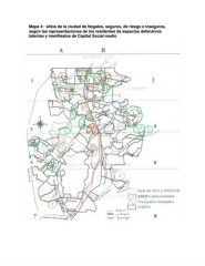 Mapa 4: sitios de la ciudad de Nogales, seguros, de riesgo e inseguros, segĂșn las representaciones de los residentes de espacios defensivos latentes y manifiestos de Capital Social medio
