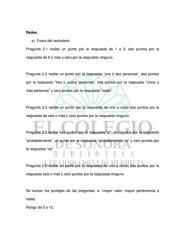 Redes. a) Fuera del vecindario Pregunta 2.1 recibe un punto por la respuesta de 1 a 5, dos puntos por la respuesta de 6 o más y cero por la respuesta ninguno. Pregunta 2.2 recibe un punto por la respuesta “una ó dos personas”, dos puntos por la respuesta “tres o cuatro personas”, tres puntos por la respuesta “cinco o más personas” y cero puntos por la respuesta “nadie”. Pregunta 2.3 recibe un punto por la respuesta de uno a cinco dos puntos por la respuesta de seis o más y cero puntos por la respuesta ninguno. Pregunta 2.5 recibe tres puntos por la respuesta “sí”, dos puntos por la respuesta “probablemente”, un punto por la respuesta “probablemente no” y cero puntos por la respuesta “no”. Pregunta 2.6 recibe un punto por la respuesta de uno a cinco, dos puntos por la respuesta seis o más y cero puntos por la respuesta ninguno. Se suman los puntajes de las preguntas, a mayor valor, mayor pertenencia a redes. Rango de 0 a 12.