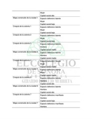 Mujer Capital social alto Mapa construido de la ciudad 1 Espacio defensivo latente Mujer Capital social bajo Croquis de la colonia 1 Espacio defensivo latente Mujer Capital social bajo Croquis de la colonia 2 Espacio defensivo latente Mujer Capital social bajo Croquis de la colonia 3 Espacio defensivo latente Hombre Capital social medio Mapa construido de la ciudad 3 Espacio defensivo latente Hombre Capital social medio Croquis de la colonia 4 Espacio defensivo latente Mujer Capital social medio Mapa construido de la ciudad 4 Espacio defensivo latente Mujer Capital social medio Croquis de la colonia 6 Espacio defensivo latente Hombre Capital social alto Mapa construido de la ciudad 6 Espacio defensivo latente Hombre Capital social alto Croquis de la colonia 7 Espacio defensivo manifiesto Hombre Capital social bajo Mapa construido de la ciudad 7 Espacio defensivo manifiesto Hombre