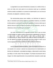 La seguridad en sus cuatro dimensiones se expresa en un estilo de vida, no como una moda, sino como parte de una estructura social que va cambiando conforme cambia la sociedad en un proceso de modernización; son una forma de enfrentarla, de adaptación, resistencia o rechazo. Son estructurantes porque crean modelos y se interiorizan sin reparar en ellos, se naturalizan para quienes habitan en sociedades modernas y se extrañan de ellos quienes no pertenecen a ese tipo de sociedades. De esto se deriva que el estilo de vida es la forma de utilizar los recursos no el de producirlos, por ello, la 49 referencia es más a un estatus que a una clase. Las cuatro dimensiones de la seguridad accionan ante lo que se conoce como la sociedad del riesgo en tanto se perdieron las certidumbres en un proceso de debilitamiento del estado benefactor, del estado proveedor de seguridades, y con ello apareció el principio de precaución que como muestra el botón de las nuevas segregaciones (fraccionamiento cerrado) constituye la evidencia. Ante la sospecha económica política y social el principio de precaución es una reacción al no conocer o calcular las consecuencias de la modernización, en términos de individuación, racionalidad tecnológica y diferenciación social intensa que dibuja un mundo urbano “lleno de peligros”. El principio de precaución ante lo inseguro “se refiere específicamente a los procedimientos necesarios cuando algo 49 David Chaney, Estilos de vida, Talasa ediciones, Madrid, España, 1996, Pp. 13-23.