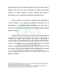 fraccionamientos que hacen evidentes barreras físicas como bardas, cercos o jardineras entre otros, para marcar el perímetro del territorio que pretenden controlar a su manera, además de accesos exclusivos para peatones y automovilistas, como una expresión de malestar de la seguridad urbana. Existe una intención y se concreta en el estado de cosas proyectadas, en un acto, resultado de una acción como proyecto preconcebido (por una desarrolladora o una colectividad vecinal), produciendo, entre otras cosas, el encierro y la exclusividad, por ello llamaremos a este espacio residencial, espacio defensivo manifiesto. El espacio defensivo que se diferencia del anterior es el espacio defensivo latente, éste, a diferencia del otro, se queda en un intento o una intención de marcar el encierro o la exclusividad, pero no se ha insertado en el mundo exterior, es decir, no ha llegado a ser un acto concreto. Para este caso se pueden reconocer a las colonias o fraccionamientos que físicamente no tienen barreras para ingresar a ellos, pero que socialmente marcan distancias hacia el fuereño, porque todo actor social en ese espacio que no maneja la pauta cultural de ese 62 lugar es un forastero. 62 Para Schutz una pauta cultural son reglas, valores y sentidos compartidos por una colectividad y quien no acate estos sobreentendidos, no es parte de la colectividad. Para profundizar en los conceptos de acción manifiesta y latente, ver Alfred Schutz, El problema de la realidad social, Amarrortur editores, Buenos Aires, Argentina, 1974, pp. 86-87.