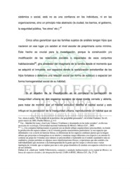 sistémica o social, está no es una confianza en los individuos, ni en las organizaciones, sino un principio más abstracto (la ciudad, los barrios, el gobierno, 67 la seguridad pública, “los otros” etc.). Cinco años garantizan que las familias sujetos de análisis tengan hijos que nacieron en ese lugar y/o asisten al nivel escolar de preprimaria como mínimo. Este hecho es crucial para la investigación, porque la construcción y/o modificación de las relaciones sociales o espaciales de esos conjuntos 68 habitacionales , gira alrededor del imaginario de la familia desde el momento que se adquirió el inmueble, son espacios donde la socialización extrafamiliar de los hijos fortalece o deteriora una relación social (en forma de estatus) o espacial (en forma homogeneidad social de su hábitat). Si el objetivo de la investigación es el comparar la percepción de inseguridad urbana en dos espacios sociales de clase media cerrada y abierta, para tratar de mostrar que un hábitat exclusivo debilita el capital social y esto influye en la percepción de la inseguridad urbana, reproduciendo un hábitat que se Ver, Alicia Lindón, “De la utopía de la periferia a las geografías personales”, en revista Ciudades, No 65, enero-marzo de 2005, Puebla México, p. 4-5. 67 Ver, , Matilde De Luna y José Luis Velasco,“Confianza y desempeño en las redes sociales”, en Revista mexicana de sociología, Universidad nacional Autónoma de México. México D.F. , 2005. 68 “ [...] los conjuntos habitacionales en general son un diseño urbano arquitectónico preconcebido, en donde la producción del espacio urbano y de la vivienda guarda características particulares: a) son espacios que delimitados o no a través de barreras físicas, se diferencian de los espacios continuos puesto que la imagen urbana que proyectan es homogénea en su interior y mantiene rasgos diferentes con respecto a su entorno b) contiene un grupo de viviendas cuyo número es preconcebido e inalterable en el sentido cuantitativo más no cualitativo, porque permiten en algunos casos transformaciones físicas y expresiones que dan sentido a las individualidades que encierran y ala heterogeneidad de la gente que los ocupa c) ofrecen una o varias tipologías de vivienda que se repiten para uno u otro grupo doméstico d) cuentan con espacios colectivos con un uso definido. Duhau et al. ,citado por Judith Villavicencio, conjuntos y unidades habitacionales en la ciudad de México: en busca de espacios sociales y de integración barrial, UAM-A-RNIU, México D.F., Pp. 27-28.