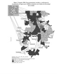 Mapa 2. Nogales 2000, Fraccionamientos cerrados y coeficiente de localización de ingreso por AGEB en relación con el índice de diversidad de la ciudad AGEB’s con mayor especialización de personas que perciben menos de 5 salarios mínimos diarios, respecto a la ciudad, entre 500 y 1000 residentes en situación de ocupados