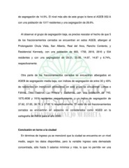 de segregación de 14.9%. El nivel más alto de este grupo lo tiene el AGEB 052-A con una población de 1317 residentes y una segregación de 28.8%. Al observar el grupo de segregación baja, es preciso rescatar el hecho de que 5 de los fraccionamientos cerrados se encuentran en estos AGEB, albergan al Prolongación Chula Vista, San Alberto, Real del Arco, Rancho Contento, y Residencial Kennedy, con una población de 683, 1758, 2616, 2616 y 534 residentes y con una segregación de 29.21, 23.95, 14.87, 14.87 y 6.74%, respectivamente. Otra parte de los fraccionamientos cerrados se encuentran albergados en AGEB de segregación media baja, con índices de segregación de entre 30 y 40% de residentes sin instrucción profesional, en este grupo se encuentran Lomas e Fátima, Tres Tesoros, La Riviera y California, con una población de 743, 1070,4936 y 1616 residentes respectivamente, y un índice de segregación de 37.62, 37.85, 38.76, y 37.62 % respectivamente. El resto de los fraccionamientos cerrados se encuentran en espacios no considerados como AGEB en la cartografía de INEGI para el año 2000. Conclusión en torno a la ciudad En términos de ingreso ya se mencionó que la ciudad se encuentra en un nivel medio, según los datos disponibles, pero la variable ingreso esta demasiado concentrada, sólo hasta 5 salarios mínimos y más, lo que no permite ver una