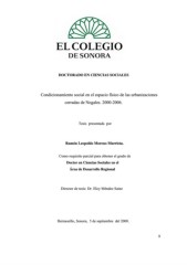 DOCTORADO EN CIENCIAS SOCIALES Condicionamiento social en el espacio físico de las urbanizaciones cerradas de Nogales. 2000-2006. Tesis presentada por Ramón Leopoldo Moreno Murrieta. Como requisito parcial para obtener el grado de Doctor en Ciencias Sociales en el Área de Desarrollo Regional Director de tesis: Dr. Eloy Méndez Sainz Hermosillo, Sonora, 5 de septiembre del 2008. 1