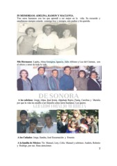 IN MEMORIAM: ADELINA, RAMON Y MACLOVIA. Tres seres humanos con los que aprendí a ser mejor en la vida. Su recuerdo y enseñanzas siempre estarán conmigo hoy y siempre, mis padres y tía querida. Mis Hermanos: Lupita, Alma Georgina, Ignacio, Julio Alfonso y Luz del Carmen, con el afecto y amor de toda la vida.. A los sobrinos: Jorge, Alma, José Jesús, Abraham Rocío, Tania, Carolina y Mariela por que la vida les enseñe a ser mejores como seres humanos. Los quiero. A los Cuñados: Jorge, Sandra, José Encarnación y Ernesto. A la familia de México: Tío Manuel, Lety, Celia Manuel y sobrinos: Andrés, Roberto y Rodrigo, por sus finas atenciones. 2