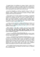 En segundo término, las movilidades que se generan al interior y exterior de las localidades fronterizas en el sentido de los espacios físicos donde se asientan que van desde las orografías más accidentadas hasta aquellas ciudades que son intersectadas por afluentes de ríos naturales que les imponen otras condiciones, y cuyos espacios físicos son los condicionantes de ciertos estilos de vida en cada una de ellas. Los procesos demográficos, en especial el crecimiento natural y el social, –vía migración- son parte fundamental en el tejido urbano que se edifica. Los procesos económicos, políticos, culturales, ideológicos que se mezclan en el tiempo y espacio configuran zonas de intenso movimiento social. Factores dinámicos como “los flujos vertiginosos de los migrantes y su confrontación con delincuentes y policías, el vaivén binacional y sus roces con agentes aduanales, los conflictos con los propietarios del suelo y los servicios, la captación de drogas y los enlaces con las redes del narcotráfico, son relaciones sociales que establecen espacos frágiles, signos volátiles, identificaciones simbólicas polivalentes, morfologías fugaces. Los escenarios se basan en claves comunicativas locales, aunque basados en códigos sustraídos de los lugares de origen” (Méndez: 2003, 1). Lo anterior son hechos que inducen a modificar sustancialmente los patrones en el habitar cotidiano de sus residentes a nivel individual, pero también a crear nuevas configuraciones en los asentamientos humanos que surgen al interior de las ciudades limítrofes con Estados Unidos. Méndez, Rodríguez y López (2005, 1) sostienen que en el caso de las ciudades fronterizas mexicanas: “el crecimiento de la mancha urbana tiende a configurar franjas concéntricas en forma de herradura, o círculo incompleto en la línea., y manifiesta, entre otros datos, la expulsión continua de asentamientos populares hacia las innovadas periferias topográficas o geográficas”. El tiempo y el espacio en el que se han desarrollado cada una de las distintas ciudades fronterizas del norte de México asimilan sus procesos de formación y consolidación en sus propios espacios físicos y sociales. El habitar de cada individuo y grupo se manifiesta en diversas modalidades ya sea en su ubicación en el asentamiento donde radica o por sus desplazamientos por la ciudad en la que le toca vivir. Méndez, (2003, 2) explica: “Los lugareños y las imágenes captadas revelan mecanismos de resistencia ante expresiones de un modo de vida que contradictoriamente se pretende lograr. Se percibe ajeno y es rechazado como valor de identidad. Más aún, los grupos sociales de ambos lados no son portadores y reproductores de culturas del todo distintas, dado sus orígenes sociales y geográficos similares, todos preñados de expectativas de cambio, de mejora, de progreso”. Así las localidades fronterizas permean distintas percepciones de sus habitantes y en ellas se manifiestan procesos socio-urbanísticos que interesa rescatar en la integración de las comunidades cerradas. 74