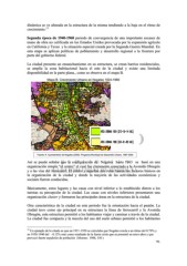 dinámica se ve alterada en la estructura de la misma tendiendo a la baja en el ritmo de 13 crecimiento. Segunda época de 1940-1968 periodo de convergencia de una importante escasez de mano de obra no calificada en los Estados Unidos provocada por la expansión agrícola en California y Texas y la situación especial creada por la Segunda Guerra Mundial. En esta etapa se aplican políticas de poblamiento y desarrollo regional a la frontera por parte del gobierno federal. La ciudad presenta un ensanchamiento en su estructura, se crean barrios residenciales, se amplía la zona habitacional hacia el este de la ciudad y existe una limitada disponibilidad en la parte plana., como se observa en el mapa B. Mapa B. Crecimiento Urbano en Nogales 1924-1960 Fuente: H. Ayuntamiento de Nogales (2000). Programa Municipal de Desarrollo Urbano, 1997-2000 Así se puede señalar que la configuración de Nogales hasta 1963 se basó en una organización simple “el centro” el cual fue claramente conectado a la Avenida Obregón y a las vías del ferrocarril. El centro y aquellas dos rutas fueron los factores básicos en la organización de la ciudad y donde la mayoría de las actividades económicas y sociales fueron conducidas. Básicamente, estos lugares y las casas con nivel inferior a lo establecido dieron a los turistas su percepción de la ciudad. Las casas con niveles inferiores presentaron una organización cluster y formaron las principales áreas en la estructura de la ciudad. Otra característica de la ciudad en este periodo fue la orientación hacia el peatón. La ciudad tuvo como eje principal en su estructura la línea de ferrocarril y la Avenida Obregón, esta estructura permitió a los habitantes viajar y caminar a través de la ciudad. La ciudad fue compacta y la mezcla del uso del suelo urbano permitió a los habitantes 13 Un ejemplo de lo citado es que en 1921-1930 se calculaba que Nogales crecía a un ritmo del 0.79% y en 1930-1940 del - 0.12% esto como resultado de la fuerte crisis que se presentó en estos años y que provocó fuerte expulsión de población (Moreno 1988, 150 ) 96.