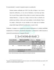 El comercializador C, comento lo siguiente respecto a su producción: Nosotros estamos certificados por CCOF. Con ellos, tú llegas, te van a dar un manual de certificación, y te van a dar un formulario, el cual tienes que llenar. Una vez que lo llenas, mandas la forma, donde vas a poner: insumos que utilizas, manejas bitácoras […] Luego vas a campo, te dan una visita a tu almacén, los productos que utilizan, es decir, que lo que mandaste, lo estés utilizando. Pasan a los campos y demás para ver que coincidan con los mapas que tú mandaste porque donde tengas notificado las producciones y ya pues es todo. Finalmente, el empaque es un elemento que repercute directamente en la calidad, durabilidad, manipulación en el transporte y presentación del producto. A continuación la tabla 4 presenta un resumen de las presentaciones y empaques utilizados. Tabla 4. Tipos de presentación y empaque Comercializador Tipo de presentación Empaque A 1 libra y 10 libras Bolsa transparente y cajas de cartón con capacidad de almacenar 10 bolsa de 1 libra 46 B ¾ de onza, 4 onzas y 1 pinta Clamshells y cajas con capacidad de almacenar los tres tipos de presentación C Presentación para ser vendido N/A individualmente Fuente: elaboración propia con base en información recabada de entrevista Con base en la información obtenida de la entrevista, la pinta es una unidad de medida inglesa que equivale a 500 46 mililitros en el sistema internacional de medidas 99