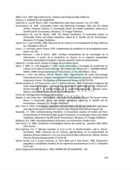INEGI, S.G.E. 1997. Baja California Sur. Gobierno del Estado de Baja California. Informe, C. HIGIENE DE LOS ALIMENTOS. Kaplinsky, R., and M. Morris. 2001. A handbook for value chain research. Vol. 113: IDRC. Korzeniewicz, M. 1994. Commodtiy Chains and Marketing Strategies: Nike and the Global Athletic Footwear Industry. In Commodity Chains and Global Capitalism, edited by G. Gereffi and M. Korzeniewicz. Westport, CT: Praeger Publishers. Korzeniewicz, M., and W. Martin. 1994. The Global Distribution of Commodity Chains. In Commodity Chains and Global Capitalism, edited by G. Gereffi and M. Korzeniewicz. Westport, CT: Praeger Publishers. Latorre D, C., and L Penilla. 1988. Influencia de los ciclones en la precipitación de Baja California Sur. Atmósfera 1:99-112. Levin, J., V. del Valle, and H. Elorza. 1979. Fundamentos de estadística en la investigación social: Harla ^ eD. FDF. López Placencia, I, and R Gomis. 2004. Ventajas competitivias de las tecnologías de la información: el sector de la electrónica en Tijuana. In La industria maquiladora mexicana: Aprendizaje tecnológico, impacto regional y entornos institucionales edited by J. Carrillo and R. Partida: El Colegio de la Frontera Norte. Meza, S. 2001. R. y DD Reygadas P. 2001. Areas potenciales y tecnología de producción de cultivos en el Valle de Santo Domingo, BCS Publicación Técnica No. 1. SAGARPA-INIFAP- SIMAC. CIRNO Campo Experimental Todos Santos. La Paz, BCS México. 133 p. Milliman, J., M.A. Von Glinow, and M. Nathan. 1991. Organizational life cycles and strategic international human resource management in multinational companies: Implications for congruence theory. The Academy of Management Review 16 (2):318-339. Murillo-Amador, B., S.R Toyes Aviles, and F.A. Beltrán-Morales. 2006. Productores Orgánicos del Cabo: Aspectos Generales. In La agricultura Orgánica en Baja California Sur, edited by B. Murillo-Amador, F. A. Beltrán-Morales, J. L. Garcia Hernández and L. Fenech Larios. México: Universidad Autónoma de Baja California Sur Centro de investigaciones biológicas del noroeste. Rabach, E, and E Mee Kim. 1994. Where is the Chain in Commodity Chains? The Service Sector Nexus. In Commodity Chains and Global Capitalism, edited by G. Gereffi and M. Korzeniewicz. Westport, CT: Praeger Publishers. Reti, Irene H. 2010. Cultivating a movement: An oral History Series on sustainable agriculture and organic farming on California's central coast. Regional Oral History Project:1-83. Reynolds, L.T. 1994. Institutionalizing Flexibility: A Comparative Analysis of Fordist and Post- Fordist Models of Third World Agro-Export Production. In Commodity Chains and Global Capitalism, edited by G. Gereffi and M. Korzeniewicz. Westport, CT: Praeger Publishers. Robinson, R.D. 1984. Internationalization of business: An introduction: Dryden Press. Ruiz Corral, J.A. 2006. Estadísticas climatológicas básicas del estado de....(periodo 1961-2003). Libro técnico. Ruiz Espinoza, F.H., P. Marrero Labrador, O. Cruz La Paz, B. Murillo-Amador, and J.L. García- Hernández. 2008. Influencia de los factores agroclimáticos en la productividad de albahaca (Ocimun basilicum L.) en una zona árida de Baja California Sur, México. Revista Ciencias Técnicas Agropecuarias 17 (1):44-48. Salinas Zavala, C.A, A. Leyva Contreras, D. Lluch Beld, and E. Diaz Rivera. 1990. Distribución geográfica y variabilidad climática de los regímenes pluviométricos en B.C.S. Atmósfera 3:217-237. Salud, Organización Mundial de la. 1956. HIGIENE DE LOS ALIMENTOS. 104. 139