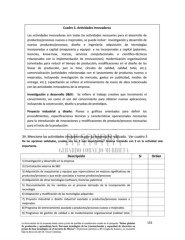 Cuadro 3. Actividades Innovadoras Las actividades innovadoras son todas las actividades necesarias para el desarrollo de productos/procesos nuevos o mejorados, se puede incluir: investigación y desarrollo de nuevos productos/procesos; diseño e ingeniería; adquisición de tecnologías incorporadas a capital (maquinaria y equipo) y no incorporadas a capital (patentes, licencias, know-how, marcas, servicios computacionales o científico-técnicos relacionados con la implementación de innovaciones); modernización organizacional (orientadas para reducir el tiempo de producción, modificaciones en el diseño de las líneas de producción, just in time, círculos de calidad, calidad total, etc.); comercialización (actividades relacionadas con el lanzamiento de productos nuevos o mejorados, incluyendo investigación de mercado, gastos en publicidad, medios de entrega, etc.); capacitación se refiere al entrenamiento de mano de obra relacionada con las actividades innovadoras de la empresa. Investigación y desarrollo (I&D): Se refiere al trabajo creativo que incrementa el conocimiento, así como el uso del conocimiento para obtener nuevas aplicaciones, incluyendo la construcción, diseño y pruebas de prototipos. Proyecto industrial y diseño: Planos y gráficos orientados para definir los procedimientos, especificaciones técnicas y características operacionales necesarias para la introducción de innovaciones y modificaciones de producto/proceso necesarias para el inicio de la producción. 34. Mencione las actividades innovadoras que su empresa ha realizado. Ver cuadro 3 De las opciones señaladas, ¿cuáles son las 3 más importantes? Ordene iniciando con 3 en la actividad más importante. Descripción Si Orden 1) Investigación y desarrollo en la empresa 2) Contratación externa de I&D 3) Adquisición de maquinarias y equipos que repercutieron en mejoras significativas de productos/procesos o que están asociadas a nuevos productos/procesos 4) Adquisición de otras tecnologías (software, licencias, patentes) 5) Documentación de los cambios en el proceso derivado de la incorporación de tecnología 6) Adaptación y modificación de las tecnologías adquiridas 7) Proyecto industrial o diseño industrial asociado a productos/procesos nuevos o mejorados 8) Programa de entrenamiento asociado a productos/procesos nuevos o mejorados 9) Programas de gestión de calidad o de modernización organizacional (calidad total, La formulación de la encuesta tomó como punto de partida el cuestionario usado en el proyecto “Redes globales 152 de producción y aprendizaje local. Derrama tecnológica de las transnacionales y capacidad de absorción en pymes de base tecnológica en el noroeste de México”. El proyecto pertenece a El Colegio de Sonora y se encuentra bajo la dirección del Dr. Oscar Contreras.