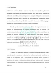1.1.2.3 Comerciantes En la dinámica económica global, no existe una compra directa entre el productor y el minorista internacional. Anteriormente, los minoristas, localizados en lo nichos núcleo, compraban los productos de importadores, es decir, el importador se encargaba del despacho de las mercancías en la aduana. Para finales de 1970, se dio un giro en la organización; la importación adquirió nuevas temáticas, es decir, el comprador abrió cartas crédito directamente al fabricante y paga al importador una comisión para llevar los bienes al puerto de exportador. Antes de que los minoristas establecieran oficinas de compra directamente en el extranjero, los importadores eran los principales intermediarios entre los minoristas y los contratistas internacionales. Aun existe una gran variedad de importadores especializados que continúan sus relaciones comerciales con ciertas industrias o ciertos nichos. Mientras el importador se encargaba de la logística y colaborara en el desarrollo de nuevas líneas de productos, las compañías centrales controlan la mercadotecnia a través del diseño exclusivo de productos de marcas (Gereffi 1994). 1.1.2.4 Fabricantes Las fábricas que producen los productos de consumo y que fluyen a través de las RGP impulsadas por los compradores, se desenvuelven mediante relaciones de manufactura por contrato con los compradores, quien a su vez son los que ponen las órdenes de compra. La manufactura por contrato se refiere a la producción de bienes finales por parte de empresas locales, donde éstos son distribuidos y enmarcados por compañías comercializadoras, entre otras (Ibid. 109). 18