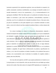 incremento exponencial de las exportaciones agrícolas, como una alternativa en respuesta a los cambios estructurales económicos (neoliberalismo, una estrategia de desarrollo anclada en el mercado internacional a través de las exportaciones), y 2) y la internacionalización de los agronegocios (Goldfrank 1994). Este último punto es la producción de hortalizas frescas, que implica un movimiento a gran escala entre productores, comercializadores, mayoristas y minoristas, cuyo fin es la satisfacción de la demanda de productos frescos y listos para comer, por parte de consumidores con alto poder adquisitivo que se encuentran localizados en nichos núcleo, a través de la oferta de una línea completa de productos básicos y exóticos durante todo el año. Los avances tecnológico en sistema de refrigeración, almacenamiento, empacado y sistemas de transporte han retardado el daño natural de los productos, por lo que su manipulación por anticipado es posible. Finalmente, cuatro innovaciones han sido identificadas, las cuales están definiendo la participación de los agronegocios: disponibilidad de productos agrícolas en contra estaciones o bien el contar con condiciones climáticas en temporadas de alta demanda, gracias al desarrollo de tecnologías para mantener la cadena de frio en largas distancias. Igualmente la creciente clientela que busca y demanda productos frescos en vez de productos enlatados o congelados. De igual forma la diferenciación de productos, específicamente los exóticos, y en el valor de los productos en tiendas al menudeo, así los productos listos para su consumo, con un procesamiento como el prelavado, las ensaladas, los vegetales cortados o pelados, entre otros (Ibid.268). En el caso del sector agrícola y las RGP, cuyas regiones productoras en el mundo son, en su mayoría países en vías de desarrollo, existe una clara división de las actividades que realizan cada uno de los nodos. Estas redes entran en la categoría RGP impulsadas por el comprador. Las 29