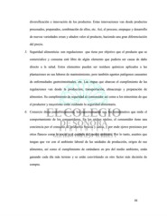 diversificación e innovación de los productos. Estas innovaciones van desde productos procesados, preparados, combinación de ellos, etc. Así, el proceso, empaque y desarrollo de nuevas variedades crean y añaden valor al producto, haciendo una gran diferenciación del precio. 5. Seguridad alimenticia: son regulaciones que tiene por objetivo que el producto que se comercialice y consuma esté libre de algún elemento que pudiera ser causa de daño directo a la salud. Estos elementos pueden ser residuos químicos aplicados a las plantaciones en sus labores de mantenimiento, pero también agentes patógenos causantes de enfermedades gastrointestinales, etc. Las etapas que abarcan el cumplimiento de las regulaciones van desde la producción, transportación, almacenaje y preparación de alimentos. Su cumplimiento da seguridad al consumidor así como a los minoristas de que el productor y mayoristas están cuidando la seguridad alimentaria. 6. Comercio ético: metafóricamente, los supermercados son los termómetros que mide el comportamiento de los consumidores. En los nichos núcleo, el consumidor tiene una conciencia por el consumo de productos frescos y sanos, y por ende ejerce presiones por otros flancos como lo social y el cuidado del medio ambiente. Por lo tanto, asuntos que tengan que ver con el ambiente laboral de las unidades de producción, origen de sus alimentos, así como el cumplimiento de estándares en pro del medio ambiente, están ganando cada día más terreno y se están convirtiendo en otro factor más decisión de compra. 36