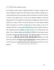2.2.1.2 Cultivos básicos: oleaginosas y granos En la categoría de cultivos básicos, la superficie sembrada en el Estado es ocupada por cinco cultivos principalmente: garbanzo, maíz, frijol, cártamo, y trigo, sin embargo, el algodón hueso, y el frijol, también forman parte de esta categoría. Bajo esta misma lógica, en el periodo 1980-1984, el cultivo que más superficie toma es el trigo con una superficie sembrada de 110,436 Ha, representando el 35% de la superficie total. De igual forma el algodón hueso ocupó el 23% de la superficie con un total de 73,408 ha. El frijol sólo representó el 5% de la superficie sembrada durante este periodo con 15,574 Ha; de igual forma el cártamo participó con sólo el 5% registrando 14,208 Ha. Los cultivos que se presentaron una extensión considerable, además del trigo y algodón hueso, fueron el garbanzo y el sorgo, con un 11 y 10% respectivamente (Véase gráfica 3). Para el siguiente periodo, que corresponde de 1985-1989, el trigo aumentó 4 puntos porcentuales alcanzando una participación del 39% de la superficie sembrada con 122,181 Ha. Por su parte el algodón hueso disminuyó a un 5% su participación en la superficie con 15,658 Ha. En lo que respecta al garbanzo y sorgo, sólo el primero registró un aumento, pasando de 11% a un 26%; el sorgo, sólo aumentó un punto porcentual, cuya participación sólo fue de 11% (véase gráfica 4). 58