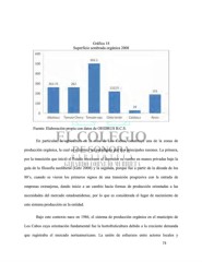 Gráfica 18 Superficie sembrada orgánica 2008 Fuente: Elaboración propia con datos de OEIDRUS B.C.S. En particular, la agricultura en la zona de Los Cabos, constituye una de la zonas de producción orgánica, la cual es sí misma un paradigma por dos principales razones. La primera, por la transición que inició el Estado mexicano al depositar su rumbo en manos privadas bajo la guía de la filosofía neoliberal (Getz 2008) y la segunda, porque fue a partir de la década de los 80’s, cuando se vieron los primeros signos de una transición progresiva con la entrada de empresas extranjeras, dando inicio a un cambio hacia formas de producción orientadas a las necesidades del mercado estadounidense, por lo que es considerada el lugar de nacimiento de este sistema producción en la entidad. Bajo este contexto nace en 1986, el sistema de producción orgánica en el municipio de Los Cabos cuya orientación fundamental fue la hortofruticultura debido a la creciente demanda que registraba el mercado norteamericano. La unión de esfuerzos entre actores locales y 73