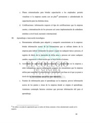 c. Planes sistematizados para brindar capacitación a los empleados: permite 28 visualizar si la empresa cuenta con un plan permanente o calendarizado de capacitación para las distintas áreas. d. Certificaciones: información respecto al tipo de certificaciones que la empresa cuenta y sistematización de los procesos así como implementación de estándares emitidos a nivel local, nacional o internacional. III. Aprendizaje e innovación tecnológica a. Herramientas utilizadas para adquirir y compartir conocimiento en la empresa: brinda información acerca de las herramientas que se utilizan dentro de la empresa para indicar claramente los pasos a seguir en cualquier tarea o proceso, el registro de diario de la operación de dicha terea o proceso así como cualquier cambio, sugerencia u observación que se haya hecho al mismo. b. Actividades de aprendizaje para incrementar el conocimiento en la empresa y entre trabajadores: provee información respecto los mecanismos que la empresa utiliza para aumentar el conocimiento o actualizarlo con base en el que ya posee a través de las herramientas que utiliza para adquirirlo. c. Fuentes de información para el aprendizaje en la empresa: provee información acerca de los puntos o áreas de la empresa donde se origina el aprendizaje. Asimismo contempla factores externos que provean información útil para el aprendizaje. 28 Se refiere a un plan de capacitación que se realice de forma constante o bien calendarizado cuando así lo requiera. 82