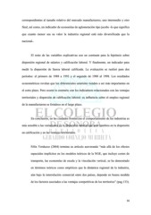 correspondientes al tamaño relativo del mercado manufacturero, uno intermedio y otro final, así como, un indicador de economías de aglomeración tipo jacobs -lo que significa que cuanto menor sea su valor la industria regional está más diversificada que la nacional-. El resto de las variables explicativas son un contraste para la hipótesis sobre dispersión regional de salarios y calificación laboral. Y finalmente, un indicador para medir la dispersión de fuerza laboral calificada. La evaluación se realizó para dos períodos: el primero de 1988 a 1993 y el segundo de 1988 al 1998. Los resultados econométricos revelan que los diferenciales salariales tienden a ser más importantes en el corto plazo. Pero ocurre lo contrario con los indicadores relacionados con las ventajas territoriales y dispersión de calificación laboral: su influencia sobre el empleo regional de la manufacturera se fortalece en el largo plazo. En conclusión, en las ciudades fronterizas el comportamiento de las industrias es más sensible a las variaciones en la dispersión salarial que ante cambios en la dispersión en calificación y en las ventajas territoriales. Félix Verduzco (2004) termina su artículo aseverando “más allá de los efectos espaciales implícitos en los modelos teóricos de la NGE, que incluye costes de transporte, las economías de escala y la vinculación vertical, se ha demostrado en términos teóricos como empíricos que la dinámica regional de la industria, aún bajo la interrelación comercial entre dos países, depende en buena medida de los factores asociados a las ventajas competitivas de los territorios” (pag.133). 16