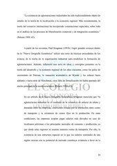 “La existencia de aglomeraciones industriales ha sido tradicionalmente objeto de estudio de la teoría de la localización y la economía regional. Más recientemente, la teoría del comercio internacional ha incorporado connotaciones espaciales, sobre todo en el análisis de los procesos de liberalización comercial y de integración económica.” (Paluzie 1999, 65). A partir de los noventas, Paul Krugman (1991b ) logró grandes avances dentro de la “Nueva Geografía Económica” utilizó una serie de técnicas procedentes de los avances de la teoría de la organización industrial para modelizar la formación de aglomeraciones. Además, reformuló una serie de ideas y conceptos presentes en la teoría del desarrollo y la economía regional de los años cincuenta, como los polos de crecimiento de Perroux, la causación acumulativa de Myrdal y los enlaces hacia adelante y hacia atrás de Hirschman, cuya falta de formalización los había apartado del núcleo principal de la teoría económica (Paluzie 1999, 65). En un artículo de la Nueva Geografía Económica, Krugman menciona que “la aglomeración industrial es el resultado de la existencia de enlaces de oferta y demanda entre las empresas, conexiones creadas por la interacción entre costes de transporte y la existencia de costos fijos en la producción. En estas condiciones, las empresas aceptan pagar salarios más elevados en caso de localizarse próximas a los principales mercados de consumo y producción, ya que desde estas regiones se asumen menores costes de transporte. Por ello, la existencia de una estructura espacial en la que los salarios nominales de una región crezcan con su potencial de mercado constituye evidencia a favor de la 33