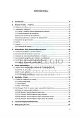 ÍNDICE GENERAL 1. Introducción ...................................................................................................... 6 2. Revisión Teórica – Empírica ................................................................................ 9 2.1 Industria manufacturera ................................................................................................... 10 2.2 Localización industrial. ..................................................................................................... 19 2.2.1Teorías y modelos clásicos de localización industrial. ................................................ 20 2.2.2 Teorías modernas de localización .............................................................................. 28 2.2.3 Nuevas tendencias de localización ........................................................................... 30 2.2.4 Factores directos e indirectos de la localización ………………………………..………………… 28 2.3 Economías de aglomeración ............................................................................................. 31 2.4 Salario ................................................................................................................................ 34 2.5 Ingreso ............................................................................................................................... 36 2.5.1 Definición de ingreso .................................................................................................. 36 3. Antecedentes de la Industria Manufacturera. ................................................. 38 3.1 La Industria en México: contexto histórico ....................................................................... 36 3.2 Características de la industria sonorense ......................................................................... 38 3.3 Evolución de la industria manufacturera en Sonora ......................................................... 43 3.4 Concentración geográfica de la industria manufacturera. ............................................... 45 3.5 Perfil socio –económico del municipio de Cajeme. .......................................................... 49 3.5.1 Cajeme: Su cabecera Ciudad Obregón. ...................................................................... 49 4. Diseño metodológico ....................................................................................... 57 4.1 Análisis de los determinantes salariales en Cd. Obregón, Sonora. ................................... 57 4.1.1 Diseño de la muestra .................................................................................................. 59 4.1.2 El modelo aplicado. .................................................................................................... 60 4.1.3 Análisis de la muestra................................................................................................. 63 5. Resultados Finales. .......................................................................................... 70 5.1 Pruebas de validación del modelo 1. ................................................................................ 70 5.1.1 Homocedasticidad ...................................................................................................... 71 5.1.2 Normalidad ................................................................................................................. 72 5.1.3 No – Colinealidad ....................................................................................................... 74 5.2 Cd. Obregón: Nivel de ingresos según sus variables explicativas. .................................... 76 5.2.1 Nivel de ingresos según la edad. ................................................................................ 74 5.2.2 Cd. Obregón: Nivel de ingresos según sexo. .............................................................. 76 5.2.3 Cd. Obregón: Nivel de ingresos según sindicato. ....................................................... 78 5.2.4 Cd. Obregón: Nivel de ingresos según contrato por escrito. ..................................... 80 5.2.5 Cd. Obregón: Nivel de ingresos según sector de actividad. ....................................... 82 6. Conclusiones y Recomendaciones .................................................................... 85 7. Bibliografía y fuentes ....................................................................................... 93 3