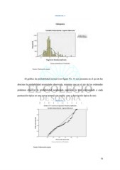 FIGURA No. 4 Fuente: Elaboración propia. El gráfico de probabilidad normal (ver figura No. 5) nos presenta en el eje de las abscisas la probabilidad acumulada observada, mientras que en el eje de las ordenadas podemos observar la probabilidad acumulada esperada, la cual corresponde a cada puntuación típica en una curva normal con media cero y desviación típica de uno. FIGURA No. 5 Fuente: Elaboración propia. 73