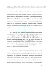 SECTOR 302.072 124.25 0.033 2.431 0.015 .247 .019 .016 .244 4.098 SERVICIOS Fuente: Elaboración propia La única variable considerada en el modelo que presentó el problema de multicolinealidad fue la de tamaño de empresa grande, por lo tanto fue excluida. El nivel de tolerancia se obtiene mediante la resta de uno y el coeficiente de determinación (R²). Los factores de inflación de la varianza (FIV) son los inversos al nivel de tolerancia, y se utilizan para calcular las varianzas de los coeficientes de regresión (ver cuadro No. 26). Se presume la existencia de colinealidad cuando se presentan tolerancias muy pequeños y FIV muy grandes, situación que no se presenta en este modelo. En el cuadro No. 26 se presenta los llamados autovalores, que nos indican cuántas dimensiones existen en el total de las variables independientes utilizadas para el análisis. Autovalores próximos a cero indican que las variables explicatorias se encuentran fuertemente relacionadas entre sí, lo que indicaría la existencia de colinealidad. Después aparecen los índices de condición los cuales son la raíz cuadrada de la razón del autovalor más alto y cada uno del resto de los autovalores. Índices menores a 15 indican la no existencia de colinealidad. Las proporciones de varianzas recogen la proporción de varianza de cada coeficiente de regresión parcial que está explicada por cada dimensión o factor. En condiciones de no – colinealidad, cada dimensión suele explicar gran cantidad de varianza de un sólo coeficiente (excepto en lo que se refiere al coeficiente βₒ o constante, que siempre aparece asociado a uno de los otros coeficientes, en este caso aparece asociado al coeficiente de contrato). La colinealidad es un problema cuando 75