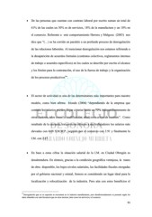 De las personas que cuentan con contrato laboral por escrito suman un total de 61% de las cuales un 30% es de servicios, 18% de la manufactura y un 10% en el comercio. Referente a este comportamiento Herrera y Melgoza (2003) nos dice que “(…) se ha corrido en paralelo a un profundo proceso de desregulación de las relaciones laborales. Al mencionar desregulación nos estamos refiriendo a la desaparición de acuerdos formales (contratos colectivos, reglamentos internos de trabajo o acuerdos específicos) en los cuales se describe por escrito el alcance y los límites para la contratación, el uso de la fuerza de trabajo y la organización 4 de los procesos productivos ”. El sector de actividad es una de las determinantes más importantes para nuestro modelo, como bien afirma Iriondo (2004) “dependiendo de la empresa que contrata los salarios pueden llegar a variar hasta un 70% independientemente de otros factores, tales como la cualificación, edad, sexo o tipo de contrato”. Como resultado de la encuesta los servicios ofrecen a sus trabajadores los salarios más elevados con 4.68 S.M.M.P., seguido por el comercio con 3.91 y finalmente la I.M. con 2.87. En base a estas cifras la situación salarial de la I.M. en Ciudad Obregón es desalentadora. En síntesis, gracias a la condición geográfica ventajosa, la mano de obra disponible, los bajos niveles salariales, las facilidades fiscales otorgadas por el gobierno nacional y estatal, Sonora es considerado un lugar ideal para la localización y relocalización de la industria. Pero aún con estos beneficios el 4 Desregulación que no se esperaba se encontrara en la industria manufacturera, pero desafortunadamente se presenta según los datos obtenidos con más frecuencia que en otros sectores, tales como los servicios y el comercio. 91