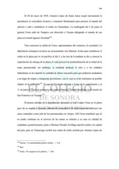 104 El 20 de mayo de 1839, Antonio López de Santa Anna ocupó nuevamente la presidencia al concederse licencia a Anastasio Bustamante para ponerse al mando del ejército y salir a restablecer el orden en Tamaulipas. La madrugada del 2 de junio el general Urrea salió de Tampico con dirección a Tuxpan delegando el mando de esa plaza al coronel Ignacio Escalada 334 . Tras conocerse la salida de Urrea, representantes del comercio, la sociedad y la diplomacia extranjera tuvieron un acercamiento con Mariano Arista para restablecer el orden en la plaza por la vía pacífica el día 5, a las seis de la mañana se dio a conocer la capitulación de entrega de la plaza, lo cual provocó la insubordinación de la mitad de la tropa pronunciada; sin embargo, la totalidad desalojó el sitio y a los soldados federalistas se les repartió la cantidad de dinero necesaria para que pudiesen trasladarse a su lugar de origen o compraran provisiones, con lo cual se evitó realizaran un posible saqueo en la población 335 . El coronel Escalada informó a Urrea de la capitulación y el 11 de junio la firmó en presencia del general Mariano Paredes Arrillaga en el rancho de San Francisco en Tuxpan. 336 El primer artículo en la capitulación reconoció a José Cosme Urrea en el pleno goce de su empleo y honores, además de exonerársele de toda responsabilidad por sus actos cometidos como jefe de los pronunciados en Arizpe. Allí Urrea manifestó que al no poder continuar en el servicio de las armas se retiraría a su casa en calidad de ciudadano, posteriormente, junto a Mariano Paredes Arrillaga marchó rumbo a la capital del país, pero en Tulancingo recibió una orden de exilio emitida por Antonio López de 334 Palomo, “La inestabilidad político-militar…”, 124. 335 Ibid. 336 Sordo, “El congreso en la primera…”, 366.