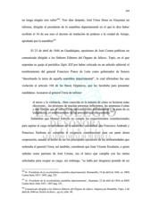 134 no tenga ningún otro señor 436 . Tres días después, José Urrea firma en Guaymas un informe, dirigido al presidente de la asamblea departamental en el que le dice haber recibido el 16 de ese mes el decreto de traslación de poderes a la ciudad de Arizpe, aprobado por la asamblea 437 El 23 de abril de 1844 en Guadalajara, opositores de José Cosme publican un comunicado dirigido a los Señores Editores del Órgano de Jalisco- Tepic, en el que exponían su queja al periódico Siglo XIX por haber criticado en un artículo editorial el nombramiento del general Francisco Ponce de León como gobernador de Sonora “desechando la terna de aquella asamblea departamental”, lo cual afirmaban fue una violación al artículo 104 de las Bases Orgánicas, que les facultaba para presentar candidatos. Acusaron al general Urrea de utilizar: el terror y la violencia,...bien conocida es la manera de cómo se hicieron estas elecciones…las prisiones de muchas personas influyentes, las amenazas á otras y una lista en que el señor Urrea prevenía como indispensable y so pena de su indignación, el nombramiento de las personas que ella contenía. 438 Señalaban que Manuel Estrella no cumple los requerimientos constitucionales para aspirar al cargo de presidente de la asamblea; consideran que Francisco Andrade y Francisco Narbona no cumplían la exigencia constitucional para ser parte desea corporación, aunado al hecho de ser los principales ejecutores de las arbitrariedades que ordenaba el general Urrea; así también, consideran que Juan Vicente Escalante, a quien señalan como pariente de José Cosme, era el único que cumplía con las rentas solicitadas para ocupar su cargo, sin embargo, “se halla por desgracia poseído de un 436 Sr. Presidente de la excelentísima asamblea departamental, Hermosillo, 19 de abril de 1844, en DHS Cuarta Serie 1831- 1847, pág. 323. 437 Sr. Presidente de la excelentísima asamblea departamental , Guaymas, 22 de abril de 1844, en DHS Cuarta Serie Años 1831- 1847 pág, 331. 438 Comunicado dirigido a los Señores Editores del Órgano de Jalisco. Impreso por Brambila, Tepic, 2 de abril de 1844 en Parish Archives.. op cit, rollo .90