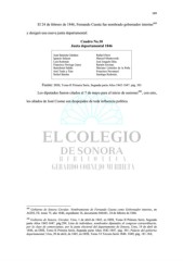 149 El 24 de febrero de 1846, Fernando Cuesta fue nombrado gobernador interino 489 y designó una nueva junta departamental: Cuadro No.10 Junta departamental 1846 Juan Bautista Gándara Rafael Otero Ignacio Salazar Manuel Monteverde Luis Redondo José Joaquín Elías Francisco Noriega López Ramón Encinas Bartolomé Salido Mariano Leónides de la Peña José Terán y Tato Francisco Navamuel Santiago Redondo, Rafael Buelna Fuente: DHS, Tomo II Primera Serie, Segunda parte Años 1842-1847. pág. 301 Los diputados fueron citados el 7 de mayo para el inicio de sesiones 490 , con esto, los aliados de José Cosme son despojados de toda influencia política. 489 Gobierno de Sonora Circular. Nombramiento de Fernando Cuesta como Gobernador interino, en AGES, FE, tomo 75, año 1846, expediente 16, documento 046441, 24 de febrero de 1846. 490 Gobierno de Sonora, Circular, Ures, 1 de abril de 1845, en DHS, Tomo II Primera Serie, Segunda parte Años 1842-1847. pág.299; Lista de individuos, nombrados diputados al congreso extraordinario, por la clase de comerciantes, por la junta electoral del departamento de Sonora, Ures, 19 de abril de 1846, en DHS, Tomo II Primera Serie, Segunda parte Años 1842-1847. pág. 301; Palacio del gobierno departamental, Ures, 20 de abril, de 1845, en DHS, Tomo VI Tercera Serie 1840- 1849, pág. 181-184;