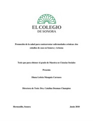 Promoción de la salud para contrarrestar enfermedades crónicas: dos estudios de caso en Sonora y Arizona Tesis que para obtener el grado de Maestra en Ciencias Sociales Presenta Diana Leticia Munguía Carrasco Directora de Tesis: Dra. Catalina Denman Champion Hermosillo, Sonora Junio 2010