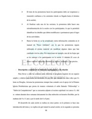 El trato de las promotoras hacia los participantes debe ser respetuoso y transmitir confianza a los asistentes (desde su llegada hasta el término de la sesión). Al finalizar cada una de las sesiones, la promotora debe hacer una retroalimentación de la sesión con los participantes, lo que le permitirá identificar los detalles que deben modificarse o permanecer para el logro de las actividades. Hasta la fecha no se ha actualizado cierta información contenida en el manual de “Pasos Adelante”, por lo que las promotoras siguen utilizando el mismo material sin modificar algunos datos que han cambiado con los años. Por mencionar un ejemplo, una de las hojas que se les entrega a los participantes en la sesión 11 titulada El costo de fumar contiene imágenes obsoletas de algunos productos y sus precios. - Descripción y análisis de las dinámicas pedagógicas y de relación Para llevar a cabo las sesiones antes descritas el programa requiere de un espacio amplio y céntrico para todos los asistentes. Es por ello que durante los cinco años que PA tiene en Douglas, Arizona las promotoras siempre han contado con el apoyo de la Primera Iglesia Presbiteriana que presta de manera voluntaria el salón llamado “Fellowship” o “Salón de Compañerismo” que se encuentra adjunto al recinto espiritual (ver anexo 3). Ahí se reúnen durante doce semanas únicamente los días miércoles en horarios flexibles, por la mañana (de 9 a 11 am) y por la tarde (de 6 a 8 pm). El desarrollo de cada sesión se realiza en cinco partes: en la primera se hace una introducción del tema y se explica de qué tratará la actual sesión; en la segunda se presenta 98