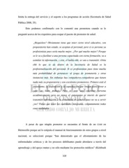 limita la entrega del servicio y el soporte a los programas de acción (Secretaría de Salud Pública 2008, 55). Esto podemos confirmarlo con lo comentó una promotora cuando se le preguntó acerca de los requisitos para ocupar el puesto de promotor de salud: ¿Requisitos? Obviamente tiene que tener cierto nivel educativo, con preparatoria han estado, se aceptan al personal, pero si es persona ya profesionista pues sería mucho mejor. ¿Por qué mucho mejor? Porque se le va a facilitar a una persona capacitada con cierta formación, va a asimilar la información, y este, el habla ehh, se van a transmitir. Orita ehh lo que se da dentro de la Secretaría de Salud es la profesionalización del personal. Si es profesionista pues tiene mucha más probabilidad de pertenecer al grupo de promotoría y otras instancias más. Sin embargo hay compañeros-compañeras que tienen nada más su preparatoria y son excelentes promotores. Primero está el entusiasmo, la disposición y la capacitación que tengan para llevar a cabo un buen trabajo. Pero si eres una excelente persona académicamente pero no tienes el entusiasmo ni interés de querer transmitir información a la comunidad en general pues no va a servir ¿no? Tienes que tener las cualidades integradas, conjuntamente todas esas cualidades. A pesar de que ningún promotor se encuentra al frente de un GAM en Hermosillo porque así lo estipula el manual de funcionamiento de estos grupos a nivel nacional, se seleccionó porque “han demostrado que el afrontamiento de las enfermedades crónicas y de los procesos debilitantes puede abordarse a través del aprendizaje y del apoyo mutuo y no sólo mediante los protocolos médicos” (Kickbush 105