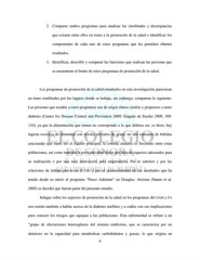 2. Comparar ambos programas para analizar las similitudes y discrepancias que existen entre ellos en torno a la promoción de la salud e identificar los componentes de cada uno de estos programas que les permiten obtener resultados. 3. Identificar, describir y comparar las funciones que realizan las personas que se encuentran al frente de estos programas de promoción de la salud. Los programas de promoción de la salud estudiados en esta investigación parecieran no tener similitudes por los lugares donde se trabaja, sin embargo, comparten lo siguiente: Las personas que acuden a estos programas son de origen étnico similar y propensos a tener diabetes (Center for Disease Control and Prevention 2009; Salgado de Snyder 2009, 109- 110), ya que la alimentación que tienen no corresponde a lo que debiera ser, es decir, hay ingesta excesiva de alimentos con niveles elevados de grasa; un alto consumo de bebidas azucaradas que suele ser el líquido principal; la comida chatarra es frecuente entre estas poblaciones, así como también la poca actividad física por falta de espacios adecuados para su realización o por una nula motivación para emprenderla. Por lo anterior y por las relaciones de trabajo previo en el CSU y por el reconocimiento de los resultados que ha tenido desde su inicio el programa “Pasos Adelante” en Douglas, Arizona (Staten et al. 2005) se decidió que fueran parte del presente estudio. Indagar sobre los aspectos de promoción de la salud en los programas del GAM y PA nos remite también a hablar acerca de la diabetes mellitus y a cuáles son sus implicaciones para conocer los riesgos que aquejan a las poblaciones. Esta enfermedad se refiere a un “grupo de afectaciones heterogéneas del sistema endócrino, que se caracteriza por un deterioro en la capacidad para metabolizar carbohidratos y grasas, lo que origina un 9