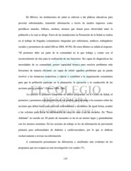 En México, las instituciones de salud se enfocan a dar pláticas educativas para prevenir enfermedades, transmitir información a través de medios impresos como periódicos murales, folletos, etcétera, mismos que tienen poca efectividad entre la población a la cual se dirige. Fuera de las instalaciones la Promoción de la Salud se realiza en el trabajo de brigadas comunitarias integradas por enfermeras, médicos, trabajadores sociales y promotores de salud (Olivas 2004, 49-50). De estos últimos se señala al respecto: “El promotor debe ser parte de la comunidad en la que trabaja y contar con el reconocimiento de ésta para la realización de sus funciones. Ser capaz de diagnosticar las necesidades de su comunidad, poseer capacidad técnica para resolver problemas más frecuentes de manera eficiente; ser capaz de referir aquellos problemas que no pueda resolver a las instancias respectivas y educar y contribuir a la organización comunitaria para que la población participe en la planeación, la ejecución y la conducción de las acciones que se realicen” (Ysunsa 1998, 204). Lo anterior lo pudimos comprobar en ambos programas: en el Centro de Salud, el promotor y promotora realizan pláticas en los pasillos para informar a los usuarios sobre las acciones que deben hacer para prevenir enfermedades y accidentes; de igual forma, acuden a las colonias para llevar la información de casa en casa o en las escuelas. En “Pasos Adelante” no sucede así. El punto de encuentro se da en un mismo lugar y generalmente con los mismos asistentes. En las sesiones de trabajo se les da información de prevención primaria para enfermedades de diabetes y cardiovasculares, por lo que se dedican exclusivamente a revisar esa información. A continuación presentamos las diferencias y similitudes más evidentes de los programas que nos ocupan en esta investigación (ver cuadro 17). 115