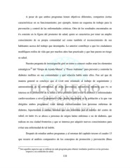 A pesar de que ambos programas tienen objetivos diferentes, comparten ciertas características en su funcionamiento; por ejemplo, tienen un esquema de trabajo para la prevención y control de las enfermedades crónicas. Otro de los resultados encontrados en PA consiste en la figura del promotor de salud, quien se caracteriza por tener un amplio conocimiento de su propia comunidad así como también el reconocimiento de sus habitantes acerca del trabajo que desempeña. Lo anterior contribuye a que los ciudadanos modifiquen estilos de vida que por muchos años han practicado y que han puesto en riesgo su salud. Nuestra pregunta de investigación giró en torno a conocer cuáles eran los elementos 26 estratégicos del “Grupo de Ayuda Mutua” y “Pasos Adelante” para prevenir y controlar la diabetes mellitus en sus comunidades y qué relación había entre ellos. Fue así que de manera general se concluye que el GAM está orientado al trabajo de seguimiento y automonitoreo de la enfermedad, es decir, prevención secundaria; mientras que PA se interesa en la promoción de la salud a nivel primario para evitar la diabetes y enfermedades cardiovasculares a nivel comunitario. Otro punto importante es la población a la que van dirigidos ambos programas: GAM trabaja exclusivamente con personas enfermas de diabetes, hipertensión o ambas, mismas que son remitidas por el médico del centro de salud; en tanto PA se aboca a personas de origen latino enfermas o no de diabetes, que radican en esa ciudad fronteriza y que se interesa por adquirir nuevos conocimientos para evitar una enfermedad de tal índole. Después de estudiar ambos programas y al retomar del capítulo tercero el cuadro 13 que recurre al análisis comparativo de los conceptos de promoción y prevención (Buss 26 Son aquellos aspectos que se utilizan en cada programa para obtener resultados positivos en las personas respecto a su condición de salud. 118
